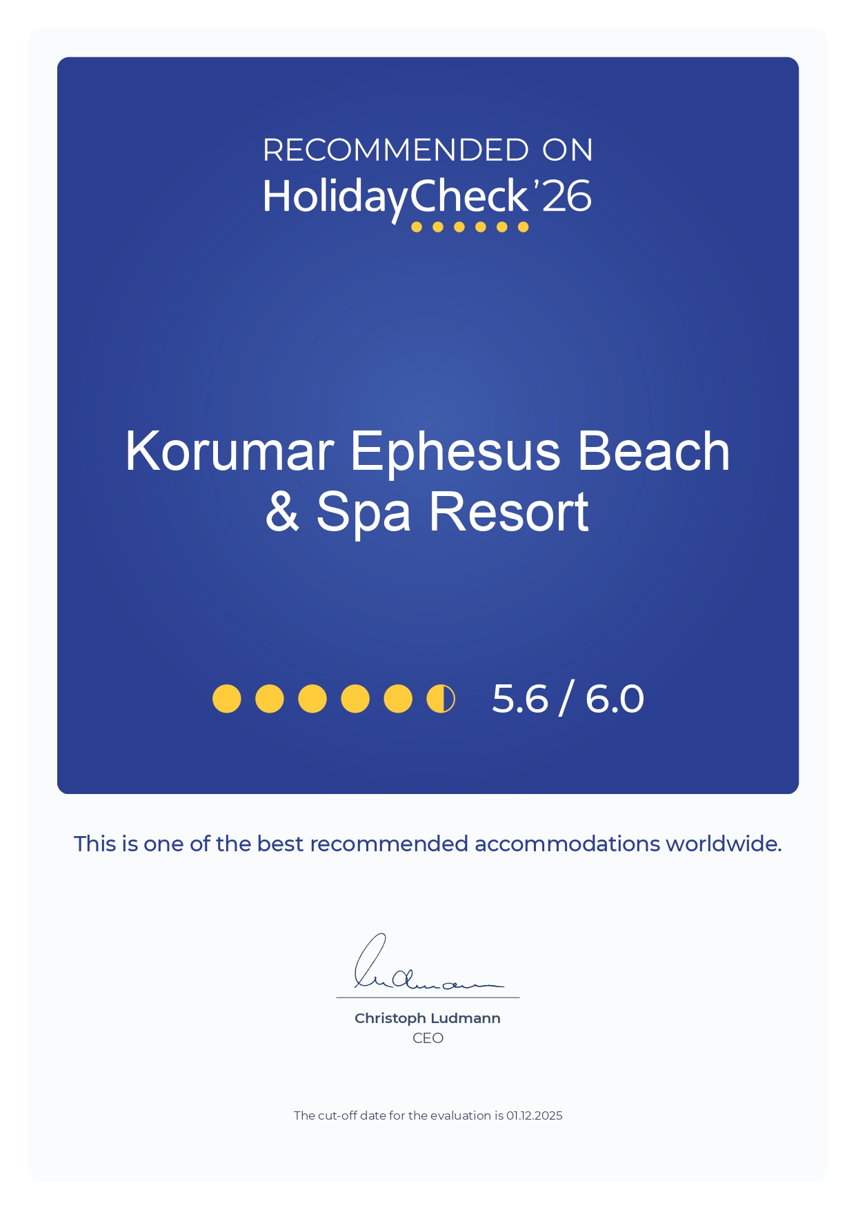 Korumar Ephesus Beach & Spa Resort Наши награды KoruMar Ephesus Beach & SPA Resort, предлагающий своим гостям незабываемый отдых благодаря качеству обслуживания, приветливому персоналу, безопасным условиям размещения и многому другому, также привлекает внимание различными наградами. Благодаря экологически чистому размещению, безопасности и пониманию качества обслуживания, объект выделяется наградами, полученными во многих отраслях. KoruMar Ephesus Beach & SPA Resort, где Вы сможете подарить себе яркие воспоминания об отдыхе.